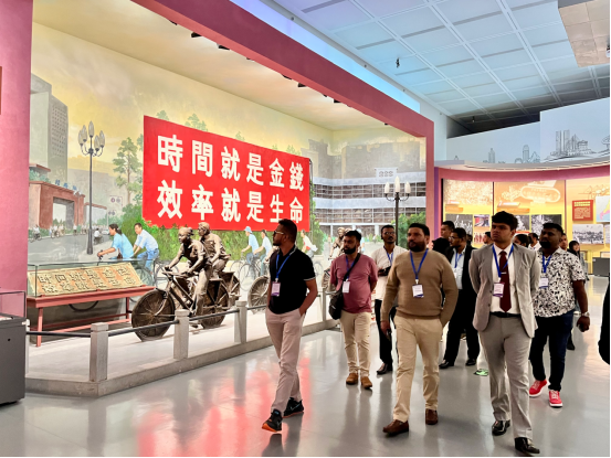 在广东改革开放40周年展览馆,调研团成员们通过千余件实物与全息影像,全景式回顾中国从经济特区到全球创新高地的跨越历程;在渔民村,成员们走进这座中国首个“万元户村”,见证城中村蝶变为现代化社区的治理智慧;莲花山邓小平铜像广场前,成员们驻足瞻仰,感悟改革开放总设计师的远见卓识。